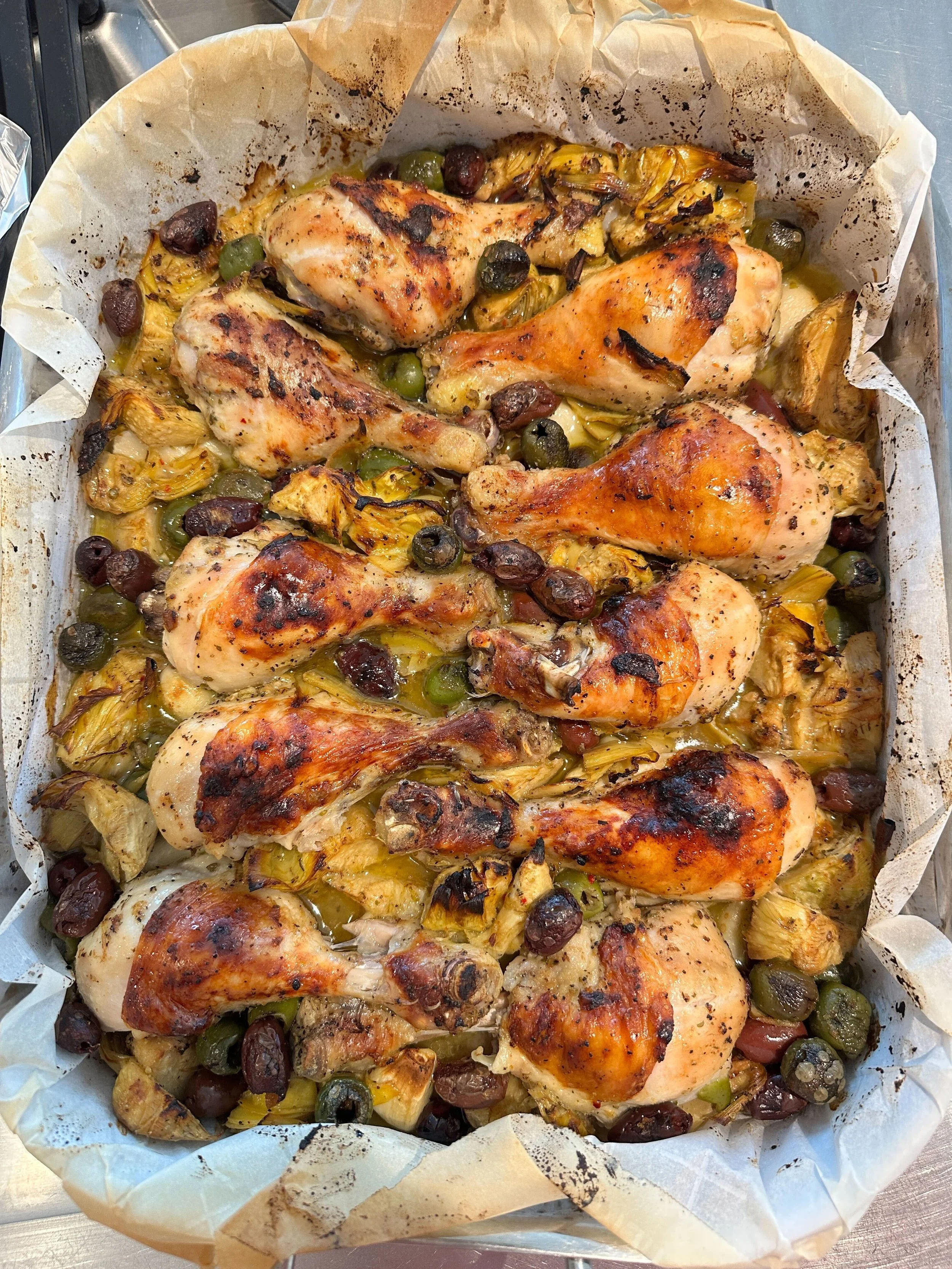 One Pan Lemon Chicken (With Artichoke Hearts & Olives)